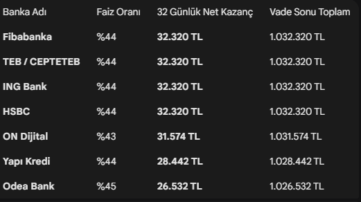 (Not: Net kazanç hesaplamaları bankaların vergi ve işlem ücretlerine göre değişiklik gösterebilir.)