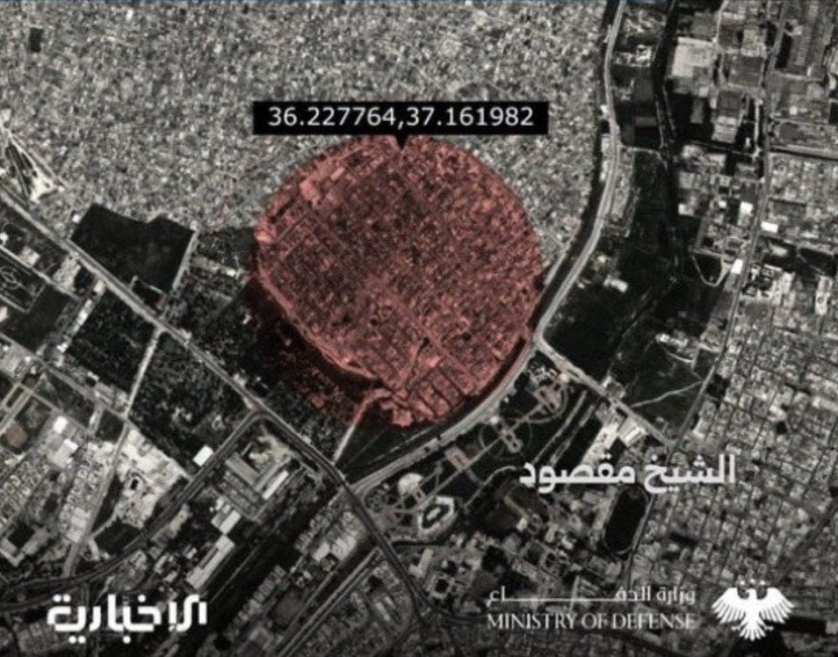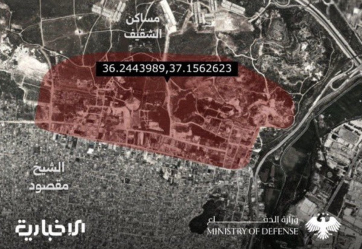 Suriye Ordusu, Halep’in Şeyh Maksut Mahallesi’nde hedef alınacak noktaları gösteren bir harita yayınladı. Sivillerin bu noktalardan uzak durması istendi.